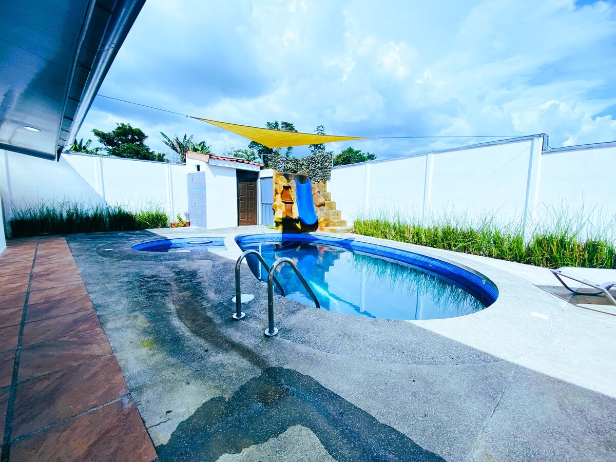 Geniet van een privéverblijf in Santa Rosa de Pocosol, San Carlos. Gehele huis voor 6 personen omgeven door bomen en lokale fauna. Vanaf het terras of de binnenplaats zie je toekans, limpets, apen en kikkers. 150/150 Mbps glasvezelinternet ideaal voor telewerken. Eigen parkeerplaats, automatisch inchecken en veilige omgeving. Gelegen op 5 minuten van winkels en 40–60 minuten van de Arenal-vulkaan. Perfect voor gezinnen, telewerk of langere verblijven om even helemaal los te koppelen en de natuur te ervaren.
