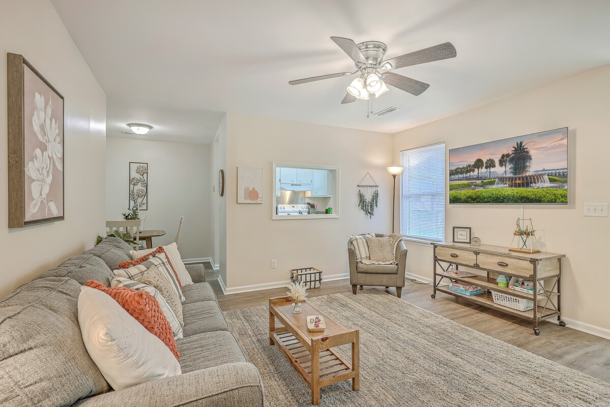 Welkom in Charleston! Je zult genieten van een volledig aparte vleugel van ons huis met een eigen ingang, 2 slaapkamers, 1 badkamer, minikoelkast, magnetron en Keurig. We zijn in een prachtige, veilige buurt, op 5 minuten van het strand met de auto. Een wandeling van 15 min brengt je naar restaurants, supermarkten en een winkelcentrum. Zonsondergangcruises, kajakken, paddle boarding, vissen en fietsverhuur liggen op 15 minuten rijden. Een rit van 20 minuten brengt je naar het historische centrum van Charleston. NIET ROKEN, HUISDIEREN OF FEESTEN OP HET TERREIN.