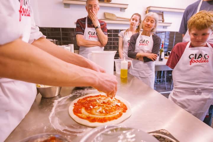 Pizza- en gelatobereidingsles met wijn voor kleine groepen
