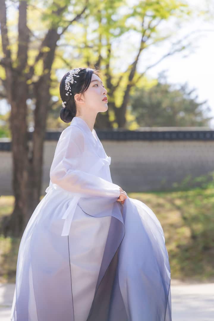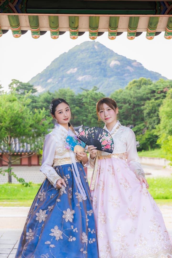 Stap in een hanbok voor foto's in het koninklijk paleis