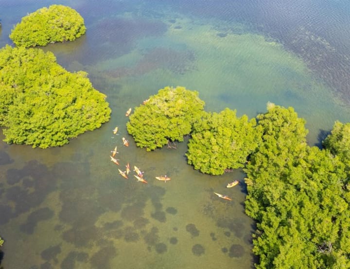 Maak in de Tkc, in een kajak, verbinding met de mangrove