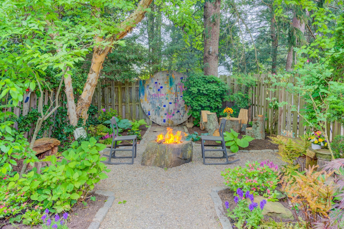 Of je nu op bezoek bent voor zaken of voor een vakantie, je zult je direct thuis voelen in ons privéhuisje verscholen aan een rustige landweg in het historische Bucks County. Vanaf het moment dat je de oprit oprijdt en langs het stenen pad dwaalt, voel je je een gevoel van rust, warmte en comfort. De gezellige omgeving is perfect voor een romantisch uitje, een ontspannend weekend of een solo-werkreis (uitzonderlijke wifi op het terrein).