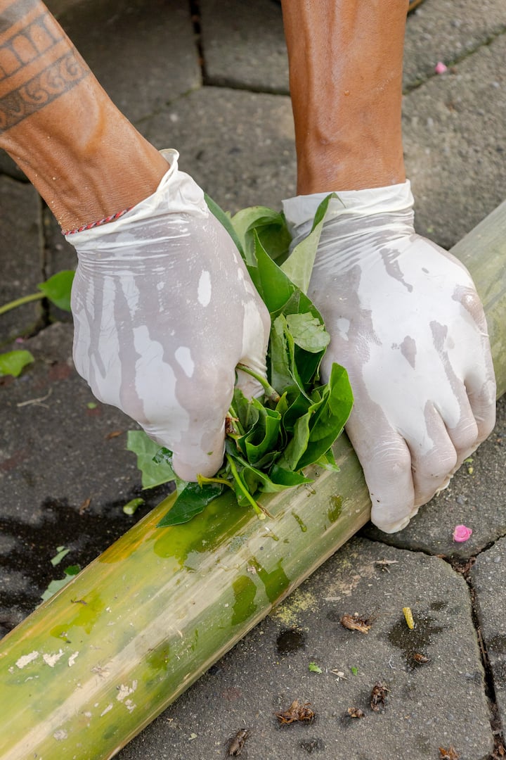 Traditionele offergaven maken in Ubud