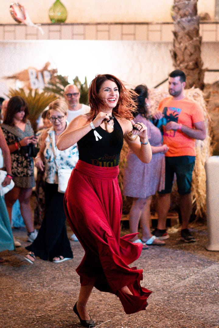 Pizzica-dansles met pizza en bier