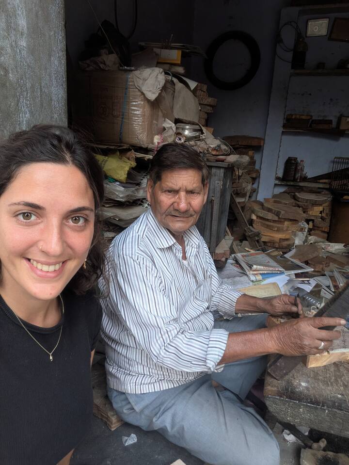 Houtblok snijden met meesterkunstenaar in Jaipur
