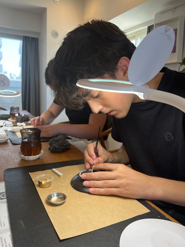 Verf met Urushi-lak en metaalpoeder