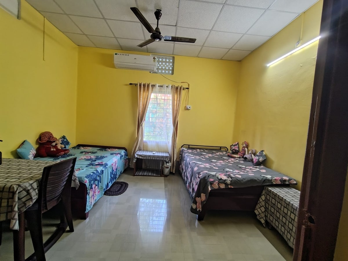 Door de gehele begane grond te boeken heb je toegang tot: 1. Een Deluxe Kamer: een ruime en goed ingerichte kamer. 2. Een standaardkamer: een gezellige en comfortabele ruimte, ideaal om te ontspannen. 3. Een niet-AC-kamer: een budgetvriendelijke optie. Het bad is niet aan de kamer bevestigd. Het is echter net in de gang. Gasten hebben ook exclusieve toegang tot de keuken die 500 dollar in rekening brengt. Het is geschikt voor maximaal 7 personen.
