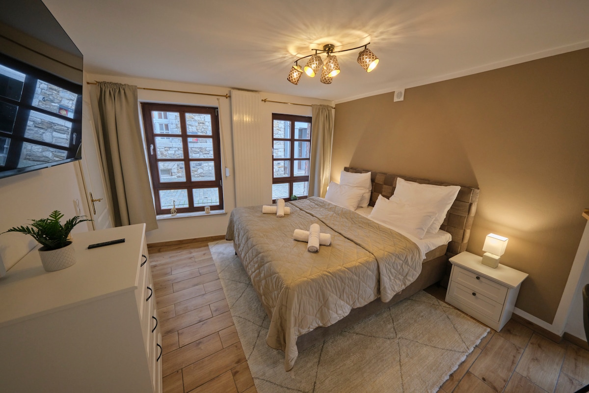 Welkom in Comfora-Home. Ons exclusieve historische appartement direct naast het kasteel biedt alles wat je nodig hebt voor een rustig, comfortabel en onvergetelijk verblijf: → Kingsize boxspringbed voor een goede nachtrust → Grote 55-inch smart tv met NETFLIX en tv → NESPRESSO koffie en gratis thee voor je perfecte start van de dag → Volledig→ uitgerust kitchenettebalkon direct aan de rivier