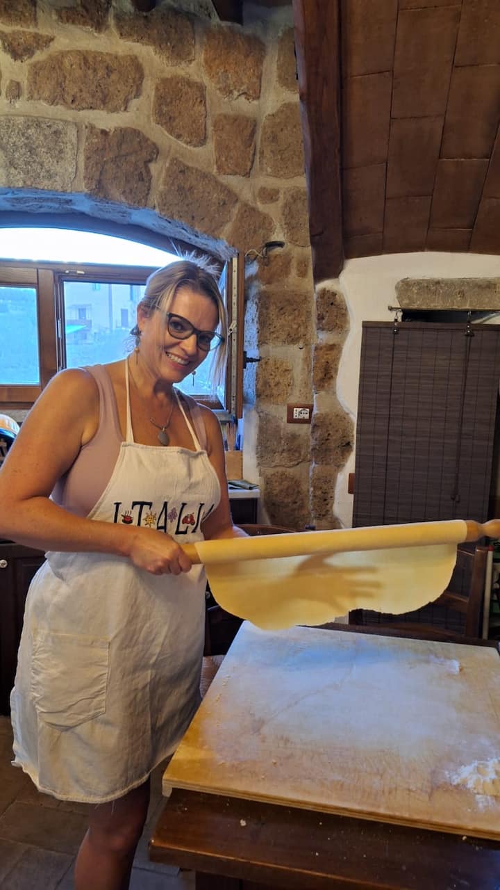Kook en eet verse pasta in een Umbrisch landhuis