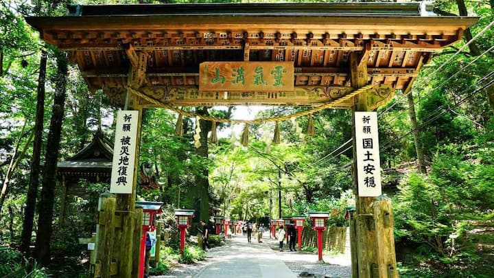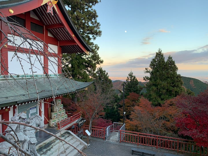 De heilige paden, soba en tempel van de berg Takao in Tokio
