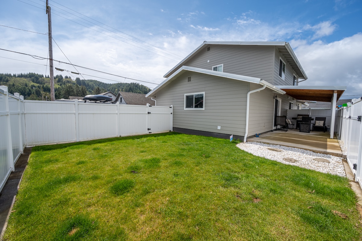 Deze woning zit midden in alles wat te doen is aan de kust. Of het nu gaat om vissen op de rivier de Umpqua of de oceaan, op de duinen rijden of winkelen in het oude centrum van Florence. Het is allemaal 10 tot 30 minuten. Maak een wandeling bij zonsondergang op het strand! Er is een leuke kleine koffiebar in de buurt en een aantal zeer goede restaurants in de buurt. Er is gratis parkeergelegenheid op het terrein en op straat. Onze oprit is 38' L x 20' W. Als je een schipper bent, hebben we handdoeken in de garage om je boot af te vegen.