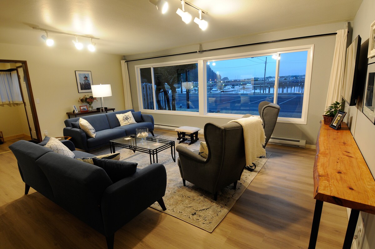 Geniet van een prachtig uitzicht op de baai en wilde dieren, waaronder herten en een verscheidenheid aan vogels vanuit de grote ramen die je verwelkomen in Bayview Cottage. Verzamel rond de vuurplaats aan het water na een dag vol avonturen om te genieten van s'mores en prachtige zonsondergangen. Alles wat je nodig hebt om een gastronomische maaltijd of een snelle snack te bereiden is aanwezig in de volledig uitgeruste keuken, waaronder specerijen, bakgerei, verschillende keukenapparatuur en andere kookbenodigdheden. Alle drie de bedden zijn voorzien van traagschuim en knus beddengoed voor een heerlijke nachtrust. Het huis is volledig gevuld met smart-tv 's, waaronder kabel, snelle wifi, een wasmachine en droger, toiletartikelen en tal van boeken, puzzels, speelgoed en spelletjes. Bayview Cottage is een ideaal huis voor gezinnen of een vriendengroep die van de prachtige zuidelijke kust van Oregon genieten! Bayview Cottage kan ook worden gehuurd in combinatie met Bayview House, een groter huis dat geschikt is voor 4 personen en naast de deur ligt. Overweeg om beide woningen samen te huren voor grotere feesten of een bijeenkomst waar gezinnen misschien hun eigen ruimte willen. Samen zijn beide woningen geschikt voor groepen van 8 personen en elke woning heeft een volledige keuken en een wasmachine/-droger! Deze accommodatie aan het water is ideaal voor gezellige avonden rond de vuurplaats. Tijdens laagwater mossel van het pand of maak een natuurwandeling rond de baai. Grote ramen met foto 's bieden uitzicht op de ongelooflijke zonsondergangen terwijl je binnen warm en gezellig blijft. Geniet samen met het huisje van het terras met gazonstoelen en de vuurplaats aan het water in de eigen achtertuin. Ik ben op elk moment tijdens je verblijf beschikbaar via telefoon, sms of e-mail. Ik woon in de buurt als je nog iets nodig hebt terwijl je in het huisje bent. Het huisje is gelegen op slechts een paar blokken van Downtown North Bend, een kleine kustplaats met winkels, restaurants, antiekwinkels en pubs. Gelegen aan het einde van een rustige weg naast een natuurpark dat voldoende gelegenheid biedt om wilde dieren te observeren, waaronder herten en vele vogels. Een korte rit naar verschillende stranden en zandduinen voor een dag vol outdoor-avonturen. Er is voldoende parkeergelegenheid voor uw speelgoed, inclusief boten en trailers. Wereldberoemde Bandon Dunes Golfbaan ligt op minder dan 30 minuten rijden! Gunstig gelegen op slechts een paar blokken van de Scenic Coastal Highway en op slechts 5 minuten rijden van de luchthaven North Bend.