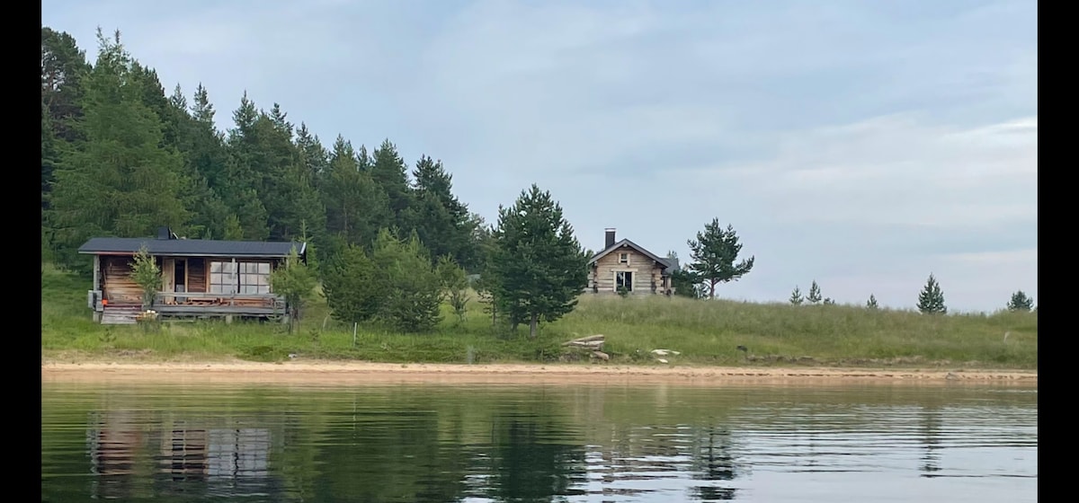 Dit privé huisje ligt naast het meer van Inari, maar ook op slechts 15 minuten rijden van het centrum van Ivalo. Prachtig meer en heuvelachtig landschap opent meteen vanaf de voordeur en sauna. Huisje heeft moderne apparatuur voor gezellig wonen, een open haard en houtverwarmde sauna. 's Avonds hoor je husky's huilen op een paar kilometer afstand en zie je hopelijk de aurora's boven het meer dansen. Ingang naar badkamer via koude veranda.
