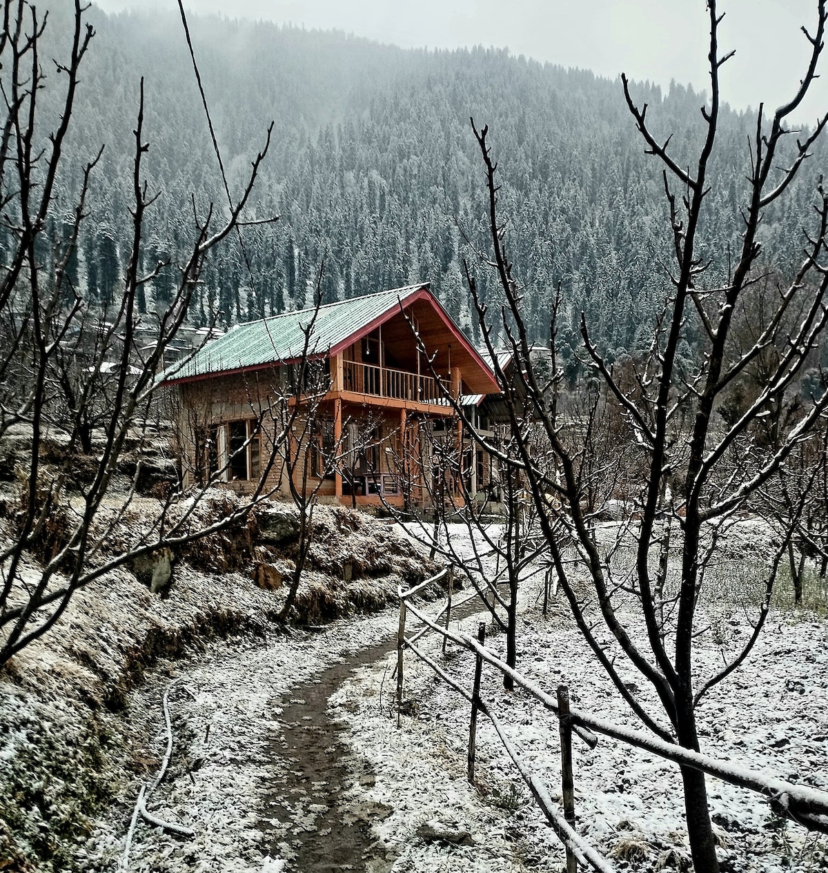 🌲 Escape to Tranquility in Sainj Valley Welcome to our cozy hand-crafted wooden cottage nestled among apple orchards and pine trees in the serene village of Manyashi, Sainj Valley. ⛰ What You'll Love: • Stunning views of snow-capped peaks from your private balcony • Fresh mountain air and peaceful surroundings — ideal for a digital detox or a romantic getaway • Beautiful wooden interiors with large windows and natural light • Wake up to the chirping of birds and fall asleep under a starry sky