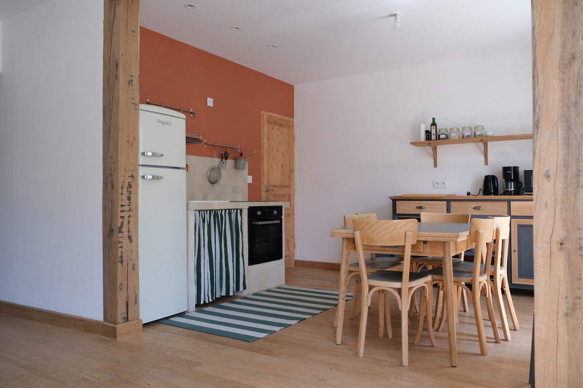 Deze woning ligt in Le Dognon in Creuse en is ideaal voor een verblijf met familie, vrienden of voor een zakenreis. Het huis is geschikt voor maximaal vijf personen. Het heeft een woonkamer, volledig uitgeruste keuken, badkamer met douche en verschillende opbergruimtes. De plek heeft wifi en glasvezel. We raden je aan om de Huisregels te lezen voor meer informatie en 'andere feedback' 😊