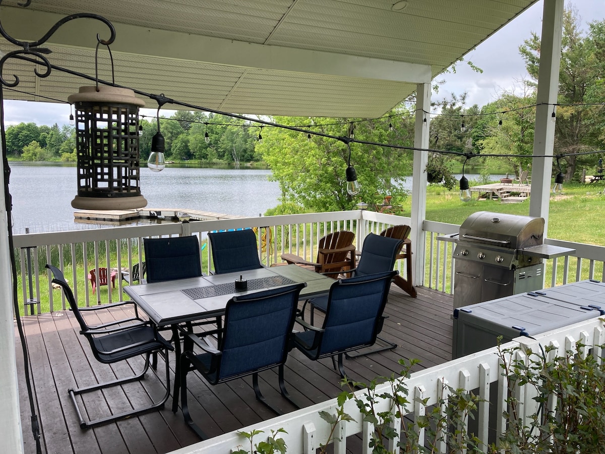 This beautiful 4 season lakefront property has 4 bedrooms, 2 bathrooms and is an ideal accommodation choice for a family or a group of friends looking for the ultimate chalet experience. Perfect for a relaxing getaway or romantic weekend. You’ll feel right at home the moment you step inside its beautiful interior with cozy wood touches, wood fireplace and outdoor hot tub (closed for the winter months).