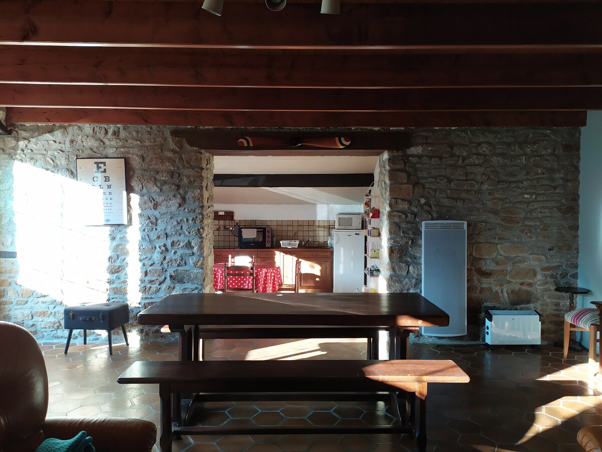 1e van onze 2 huisjes gelegen in een terrein van 1 ha (elk huisje heeft een eigen advertentie): Oude bakkerij omgebouwd tot een vrijstaand huis van 65 m2 met open haard, volledige spa (sauna, stoomcabine, jacuzzi) VOLLEDIG PRIVÉ. Bad- en handdoeken, lakens aanwezig, (badjassen niet aanwezig), ontbijt zonder extra kosten (bij je thuisbezorgd), barbecue (houtskool niet aanwezig).