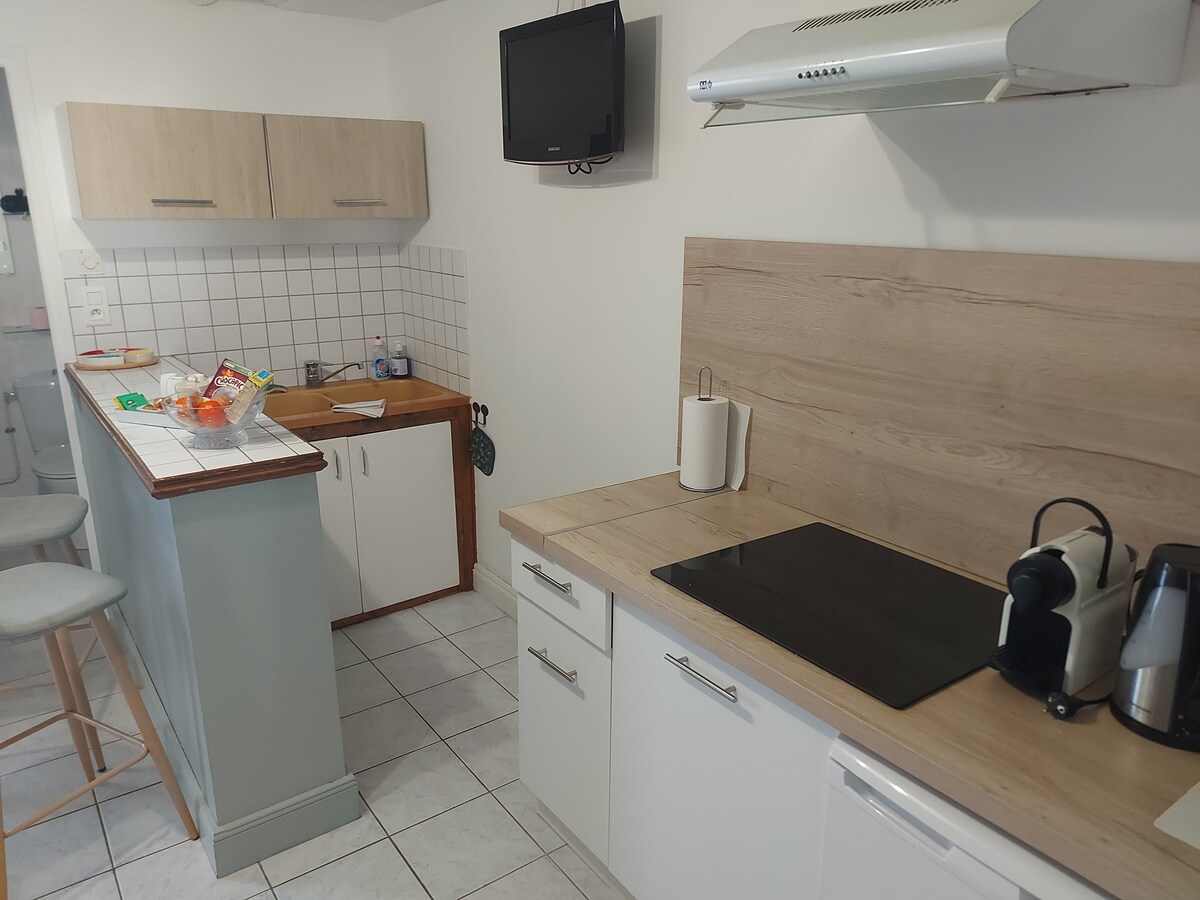 "Het nest van liefhebbers" is de ideale plek voor koppels die op zoek zijn naar ontspanning en zenitude. Dit huis van 70m2 volledig gerenoveerd is ingericht en ingericht in tinten en natuurlijke materialen door een verslavende inrichting. Deze gezellige cocon is de perfecte plek om twee personen te ontmoeten en een goede tijd te hebben als minnaar. De +: jacuzzi, massageruimte, videoprojector met thuisbioscoop Mooie diensten, nette decoratie en mooie materialen zoals gewaxt beton, beddengoed, biologisch katoen.
