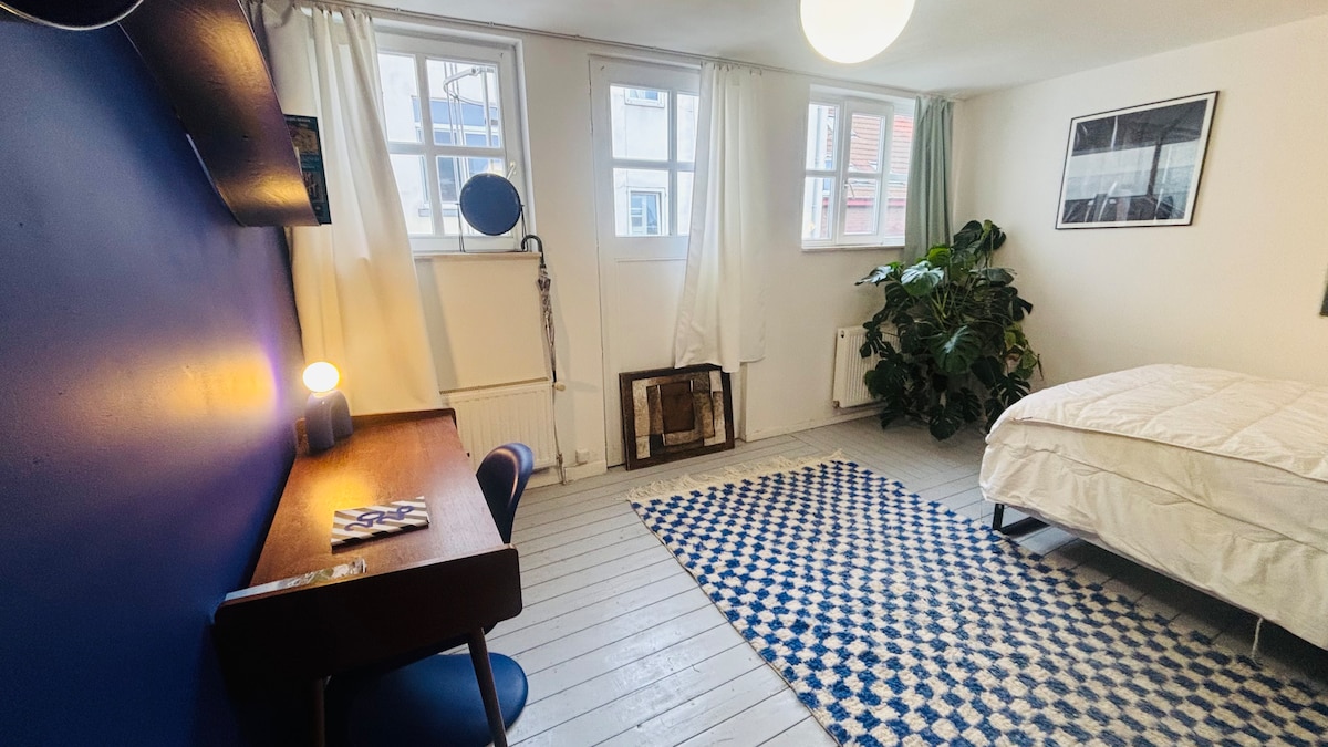 Tucked away on a serene street in the ultra-chic Goulot Louise neighborhood, this studio is a self-contained oasis with its kitchen, living room, dining nook, bedroom and bathroom. You also have access to top-tier communal spaces, including a huge kitchen, dining room, lush garden, a fitness and yoga room for those zen moments. Set in one of Brussels’ most coveted districts, you’ll be steps away from designer boutiques, gourmet restaurants, and the buzzing energy of Avenue Louise.