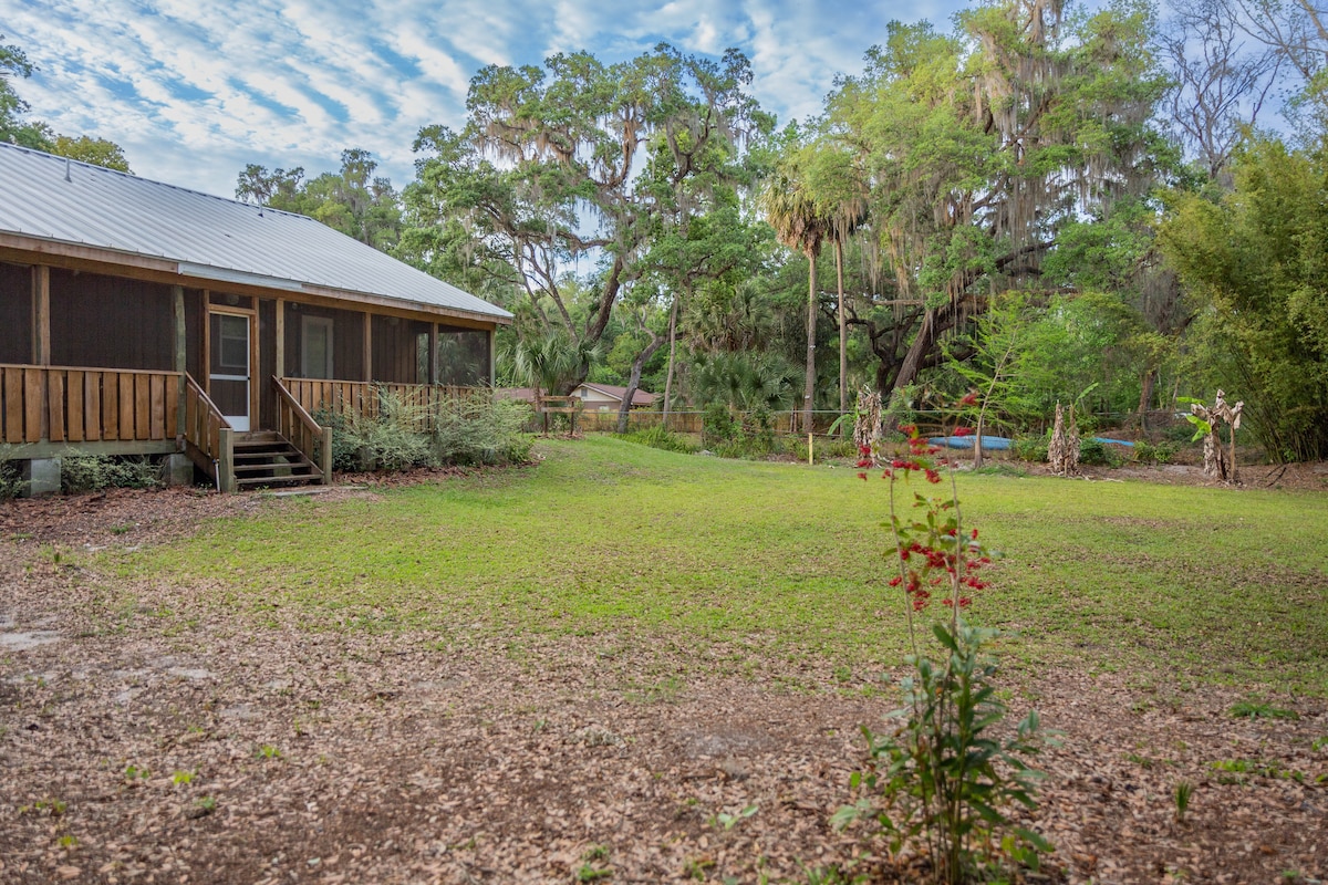 This is 2 acres nestled in 53,000 acres of forest, yet just 1 min. Tosohatchee Wildlife Mangt Area, 5 min. to Ft. Christmas Historical Park, 20 min. to Orlando Airport, 20 min. to Kennedy Space Center, 30 min. to Jetty Park Beach (Atlantic Ocean), 10 min. Lone Cabbage Air-boat rides on the St. Johns River, 45 min. Disney World & many other attractions.. You’ll love my peaceful place, because of the Diverse change of environment w/in min. & gives you a variety of pleasures w/in just mins.