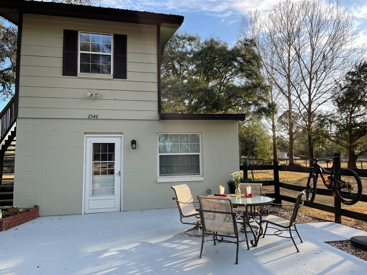 Welcome to "The Barn on the Creek" in Mount Dora voted one of the best small towns to live in or visit in America. Sit back , unwind and relax with a waterfront view and possibilities of viewing wildlife. The entire place on top of a Barn, 3 sleeping areas with parking and beautiful green landscape. NO CLEANING FEE We are minutes away from unique shops, Antique flea market and minutes away from downtown Mount Dora where you can enjoy one of many festivals or our many unique shops.