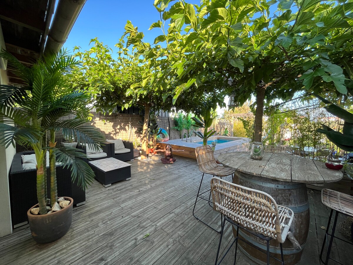 T2 appartement dicht bij Montpellier met tuin en spa