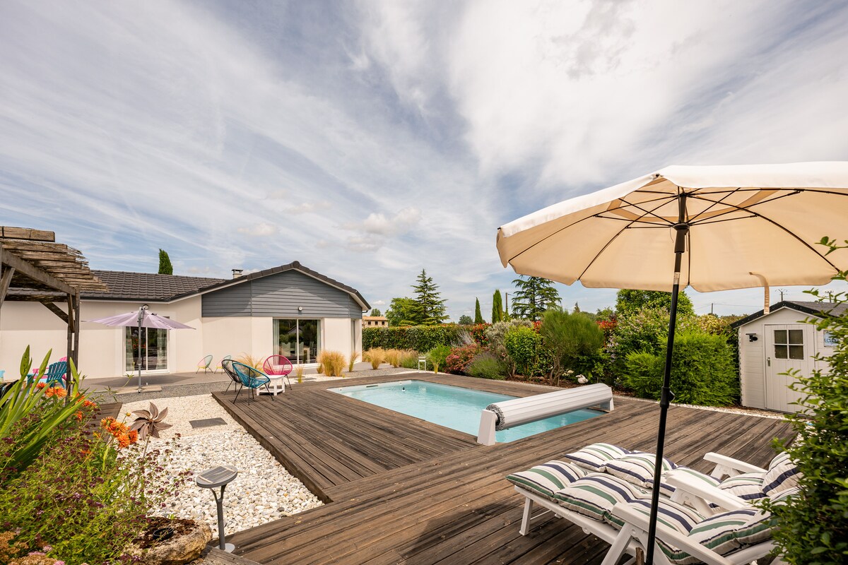Ideaal gelegen tussen Bergerac en Saint-Emilion, in een groene omgeving, kom en ontdek deze aangename 63 m2 accommodatie, aangrenzend maar onafhankelijk van ons huis. Het is gelijkvloers aan de rand van het zwembad waar je van juni tot september of zelfs oktober kunt genieten, afhankelijk van het weer (niet verwarmd). Je voelt je alsof je alleen bent in de wereld, omgeven door natuur, gesust door het gezang van krekels en vogels. Wij accepteren gasten met een huisdier.