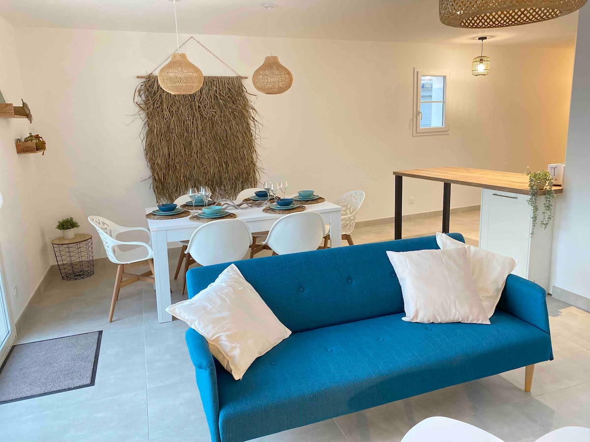 Geniet van een elegante accommodatie van 83m2, ideaal gelegen in de sector van St Pierre d 'Oléron, dicht bij alle winkels (bakker, restaurant,pers...) en het stadscentrum. (Bioscoop, winkels, restaurants...) Om toegang te krijgen tot de kleine dorpjes en stranden, heb je toegang tot de fietspaden 200m van de accommodatie. Het huis is zeer gemakkelijk te bereiken en heeft een parkeerplaats voor het huis en achter het huis aan de buitenkant van het terras.