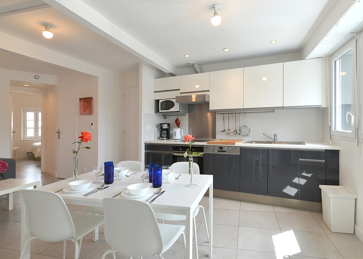 Vereenvoudig je leven in deze rustige, centraal gelegen woning. Volledig gerenoveerd appartement dicht bij de kabelbaan, dicht bij de Saint-Louis zalen ( winkels en restaurants), rue de Siam, 15 minuten lopen van het treinstation. Appartement op de 5e en laatste verdieping met lift, adembenemend uitzicht op de Penfeld, de kapucijnen, de Recouvrance-brug, de Tanguy-toren en de zee. De kamers zijn rustig met uitzicht op de binnenplaats van een school,de kerk van Saint Louis en een klein uitzicht op het stadhuis)