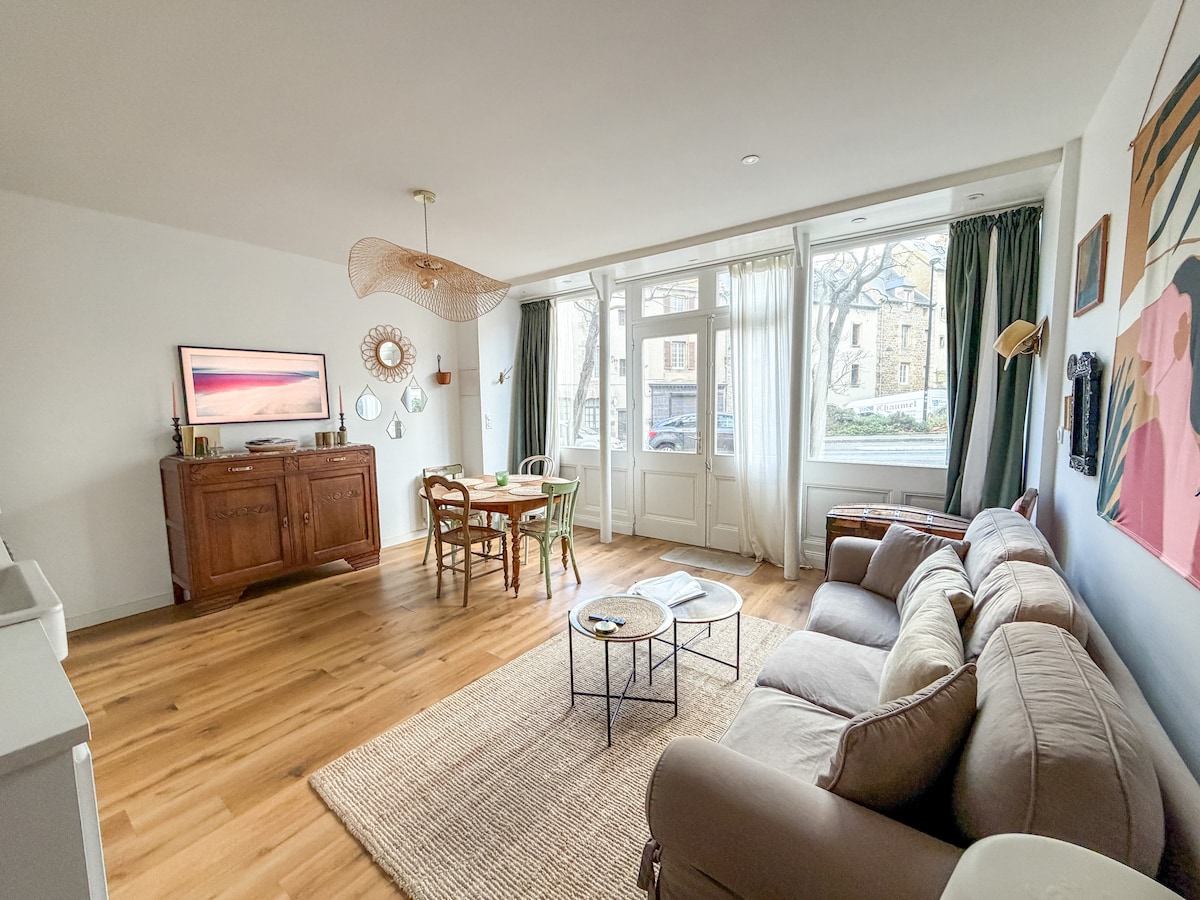 In een charmante buurt genaamd Saint-Servan, dicht bij het strand (50 m): een oude kunstgalerie gelegen op de begane grond, gerenoveerd als huis, maar waarvoor we zijn geschiedenis wilden behouden... Zeer goed gelegen, alles is op loopafstand (kruispuntmarkt, bars, restaurants, apotheek, bakkerij, wijnwinkel, bushalte...) Onze accommodatie bestaat uit een woonkamer met een volledig uitgeruste keuken, twee slaapkamers en een doucheruimte.