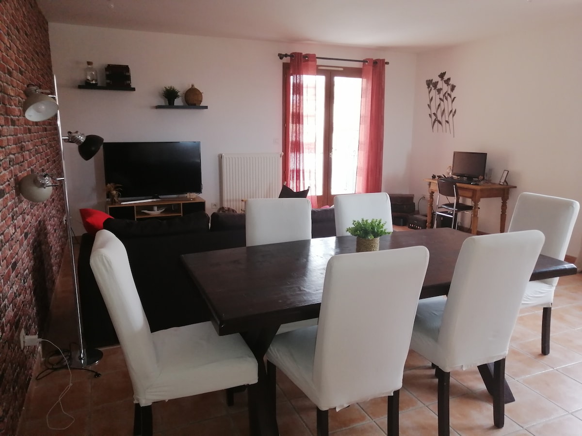 Charmante accommodatie, duplex met alle comfort die je nodig hebt om het naar je zin te hebben. Met een buiten om volledig van te genieten. De accommodatie is 50 m2. Beneden vind je een volledig uitgeruste keuken en boven heb je een slaapgedeelte met een comfortabel bed (200/200) en een slaapbank die geschikt is voor 2 andere personen. Je vindt er ook een tv-ruimte, spelletjes en een bibliotheek. Rustige buurt.. Beddengoed/badhanddoeken aanwezig. Wifi. Netflix. Freebox tv-kanalen.