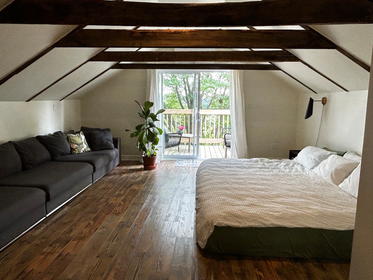 À 1h30 de Mtl. Sortez de votre routine, pour décrocher l'espace d'un week-end. Partez à la découverte d'un coin de pays méconnu et ce, à peu de frais! En pleine campagne, dans le bâtiment secondaire, ce loft distinctif avec vue sur atelier d'artiste vous charmera par son coté éclectique. WiFi et internet inclus. Empruntez plusieurs trajets (vélo ou voiture) loin des circuits traditionnels. Venez piquer une jasette avec nos maraîchers, pêcheurs, artistes et artisans locaux. CITQ 301214