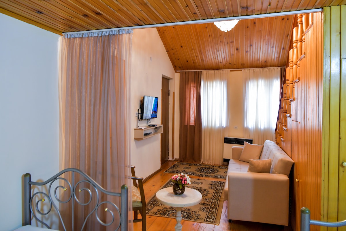 Ons gezellige huis is de perfecte plek voor diegenen die op zoek zijn naar eenzaamheid, het waarderen van comfortabele eco-retreats, heerlijk zelfgemaakt eten en de schoonheid van de natuur van Georgië: • 2 lichte en gezellige slaapkamers, een woonkamer met een projector en vinylspeler, een kleine uitgeruste keuken en een badkamer met raam. • Een buitenzwembad, een tuin met heerlijke groenten en fruit; • Wij zorgen voor het koken terwijl je geniet van prachtige zonsondergangen en je avonturen in Georgië plant.
