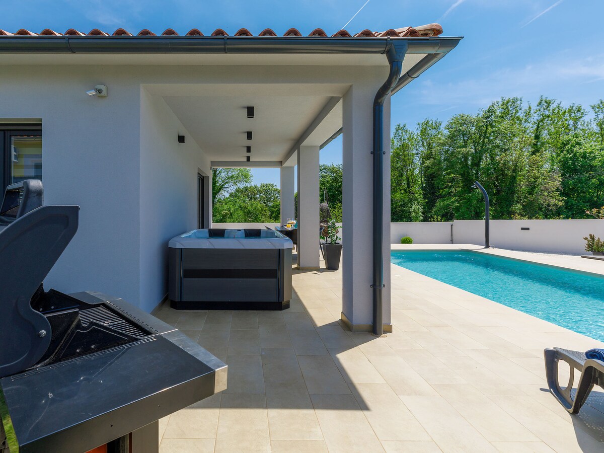Deze moderne villa met privé zwembad ligt op slechts een paar minuten rijden van het centrum van Barban in een klein pittoresk dorpje Orihi. De villa ligt op een verhoogd terrein en omgeven door groen. Bij mooi weer is er uitzicht aan de ene kant van het dorp Bale en aan de andere kant van het eiland Cres.
