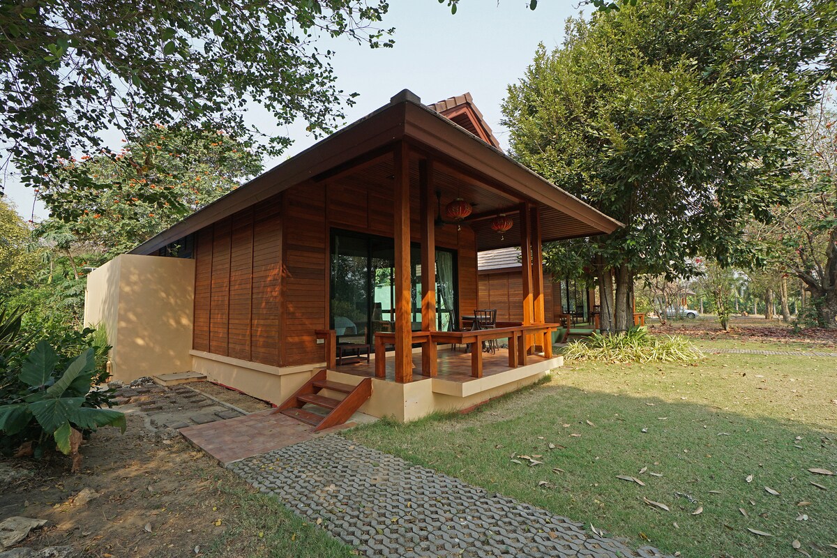 Een van de gastenverblijven in het privébos. Je kunt even naar de natuur kijken met verschillende voorzieningen en activiteiten, waaronder vissen, fietsen, fietsen, BBQ in Thaise stijl, roeiboot, een roeiboot, enz.