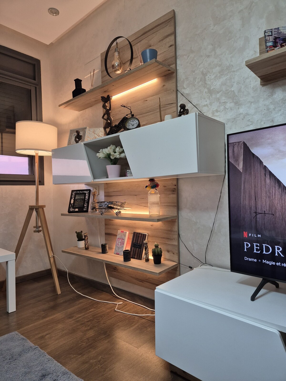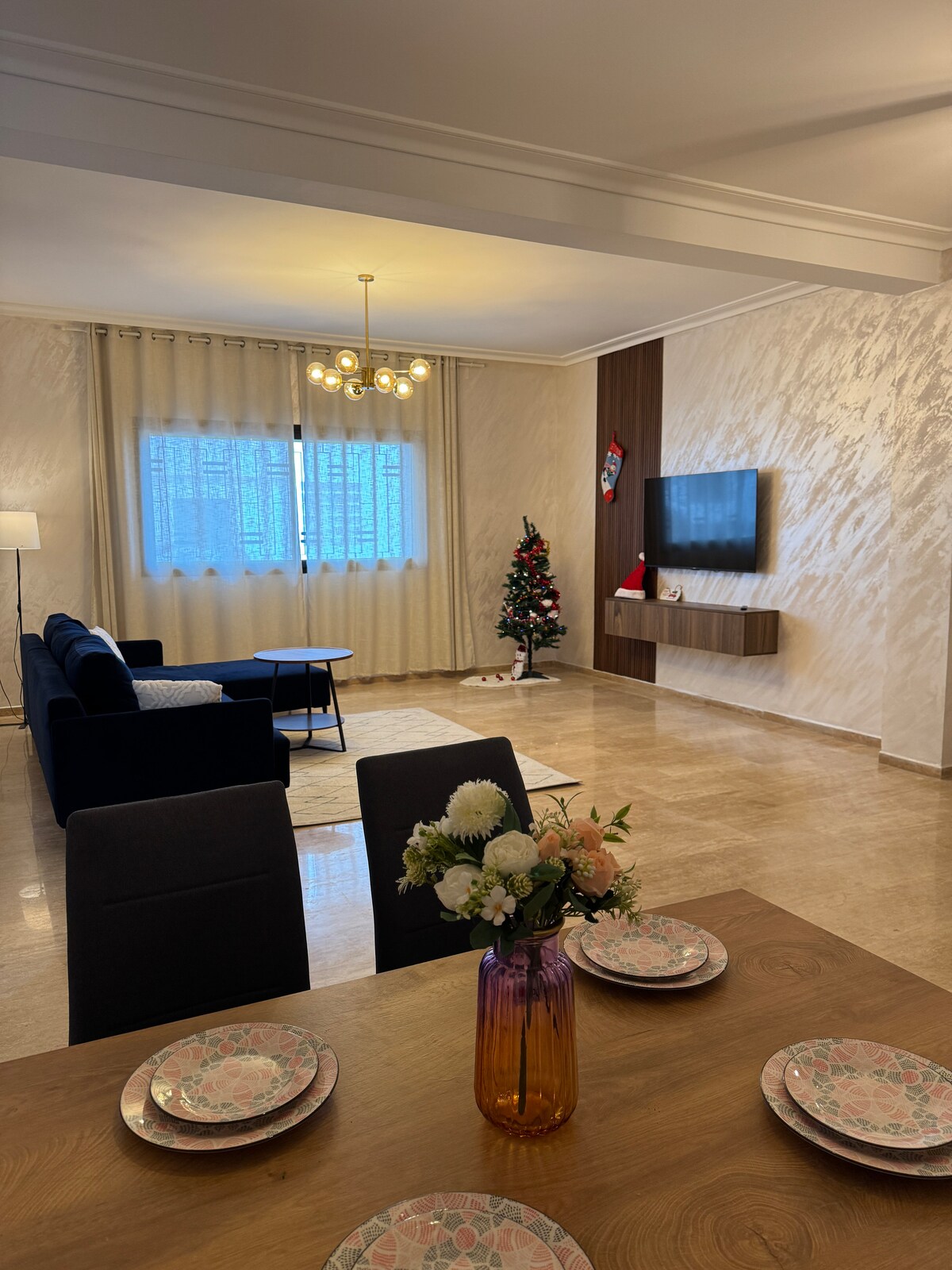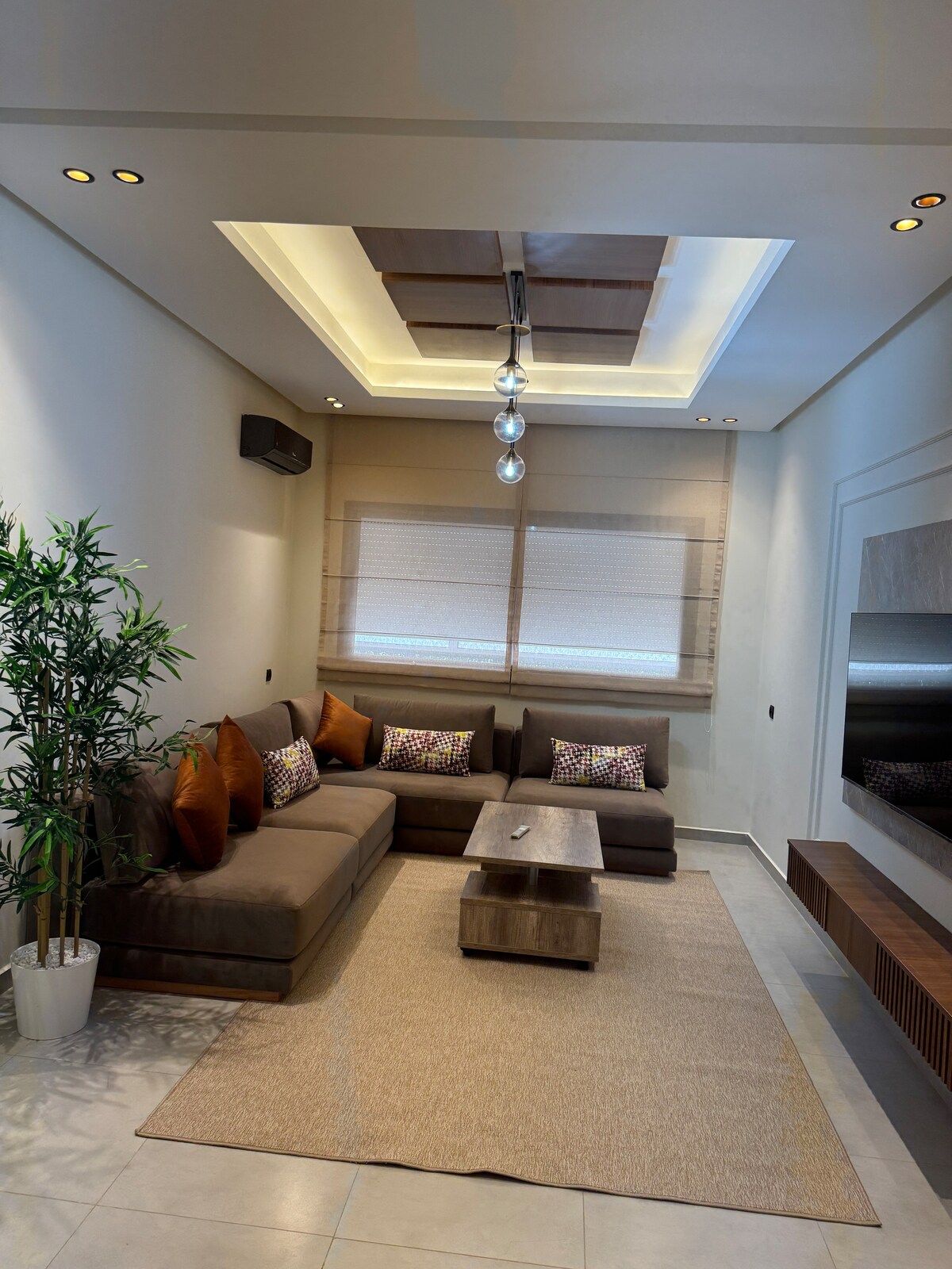 Welkom bij je gezellige groene toevluchtsoord! Geniet van een stijlvol comfortabel verblijf in deze lichte, zorgvuldig ontworpen flat - op slechts 15 minuten rijden van Rabat-Salé Airport en direct tegenover Technopolis. De flat kijkt uit op een prachtig aangelegd uitzicht en ligt op loopafstand van alle essentiële voorzieningen het appartement beschikt over: Een ruime open woonkamer met een grote smart-tv Volledig uitgeruste keuken Een serene ensuite hoofdslaapkamer met een kingsize bed Een gezellige slaapkamer met twee eenpersoonsbedden, perfect voor familie of vrienden