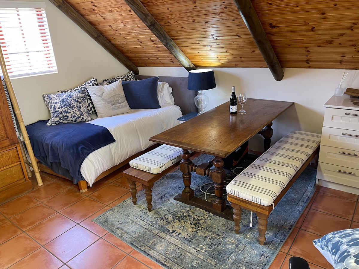 Mooi appartement, boven het hoofdgebouw, komt binnen via de hoofdingang. Gezellige woonkamer met een balkon met uitzicht op de groene fynbosband. Het hele huis wordt aangedreven door zonne-energie. Gelegen in Blue Lagoon, een beveiligd privélandgoed. Koelkast, magnetron, thee- en koffiestation in de woonkamer. Op 5 minuten lopen van de deur naar het rustige strand van Calypso 1,8 km van Laguna Mall. 2,6 km van Mykonos Casino en restaurants. Perfecte locatie om de regio Westkust te verkennen of gewoon om een weekendje weg te gaan.