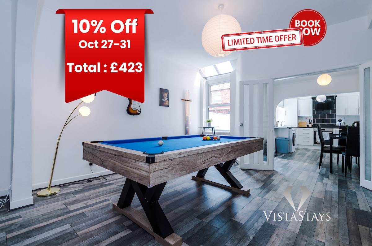 7 gasten, 3+1 slaapkamer. Gratis parkeren/Old Trafford/MCR