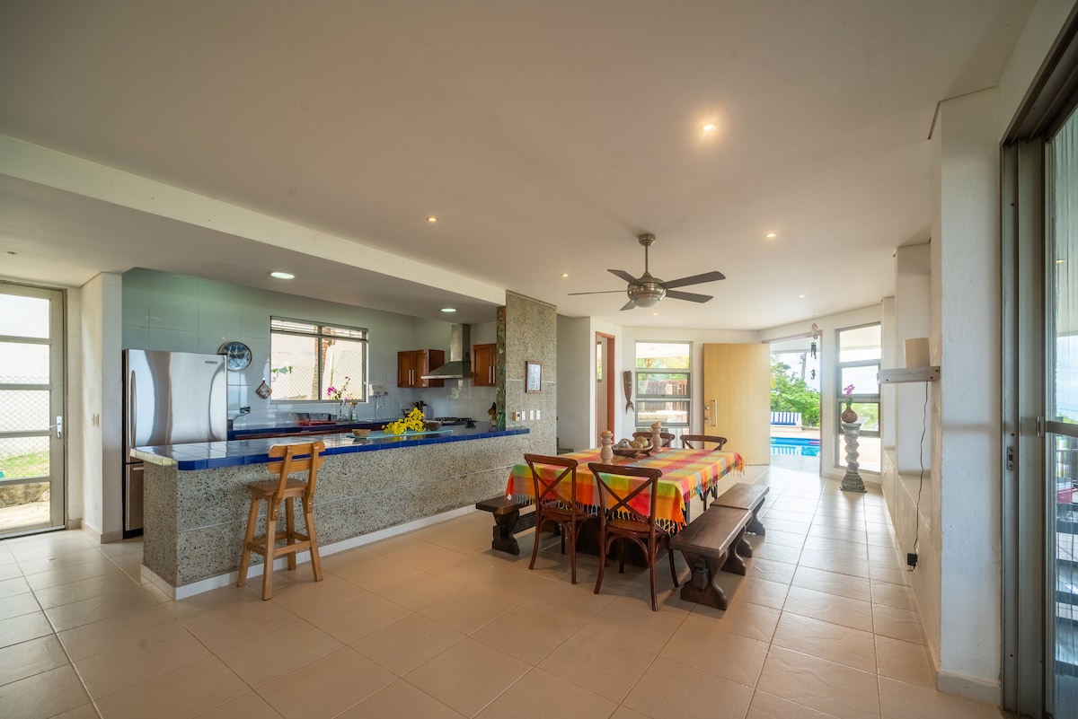 Wakker worden op een steenworp afstand van de oceaan en een duik nemen in je privézwembad met je vrienden. Geniet van zonsondergangen vanaf het panoramische dakterras terwijl je een boek leest. Rust in 3 slaapkamers met airconditioning en eigen badkamers met warm water. Werk rustig met glasvezel-wifi, je zult nooit zonder stroom of water komen te zitten (eigen generator). Bij aankomst vind je een welkomstkoffie en een volledig uitgeruste keuken. Steek de straat over naar Casa Mambo Hotel wanneer je maar wilt. Eigen parkeerplaats. Woon waar de rust van de zee samenkomt met moderne voorzieningen.