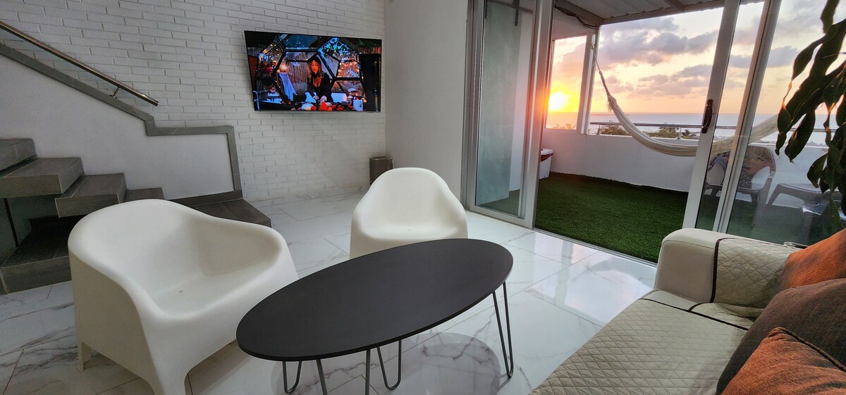 Penthouse Loft-A/C-met uitzicht op de zonsondergang en de zee