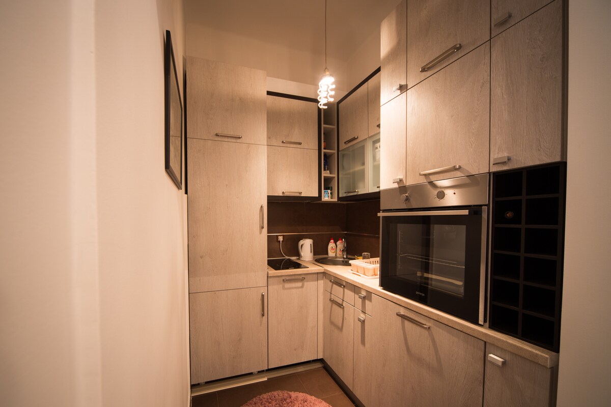 Dit appartement van 80 vierkante meter heeft twee slaapkamers gedeeld door een grote keuken/eetkamer/woonkamer. Het appartement is gelegen op loopafstand van de belangrijkste toeristische bezienswaardigheden van Belgrado – Nationale Assemblee, Museum en Theater, Knez Mihajlova straat, Kalemegdan Fortress, Skadarlija (de bohemien wijk). De gasten kunnen verschillende eet- en drinkgelegenheden vinden in nabijgelegen restaurants, cafés en pubs. Enkele van de best beoordeelde eetgelegenheden bevinden zich in deze omgeving. Er is een 24/7 supermarkt op de hoek.