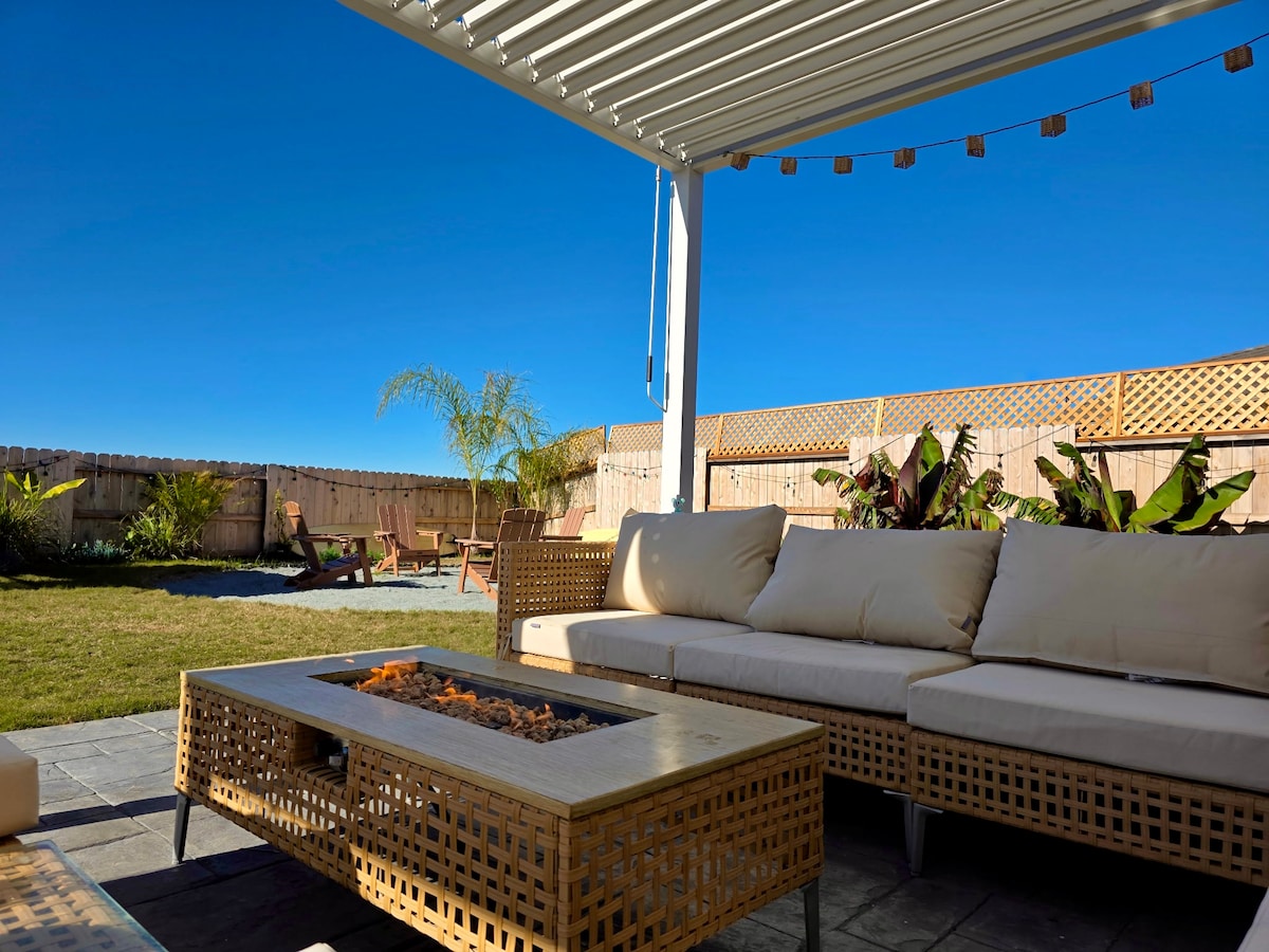 Gratis ONTBIJT en DRANKJES 🧁☕️ 🥐 Welkom in een luxe familieverblijf ☀️ met een prachtig uitzicht op de bergen, een eigen tikibar, twee zithoeken met vuurplaats en een ruime achtertuin die perfect is voor kinderen om te spelen en gezinnen om samen te komen. Dit huis is perfect voor een groep volwassenen die op zoek zijn naar een uitje en willen genieten van een zonnige plek om cocktails te mixen of buitenspellen te spelen zoals bijlwerpen! Maar is ontworpen met koppels die met kinderen reizen in gedachten. Ontspan terwijl je weet dat je kleintjes veilig in de buurt zijn.