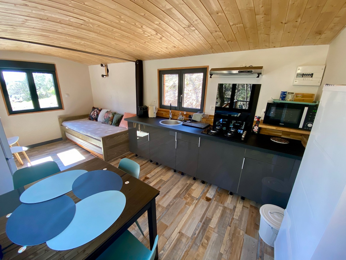 Klein huis van 27 m2, gelegen omgeven door bomen in een rustige omgeving. Om er toegang toe te krijgen, moet je op een pad lopen voor 200 op een sterke klim. Het huis beschikt over een woonkamer met een clack, een keuken, een slaapkamer en een badkamer met droge toiletten. Ontbijt niet inbegrepen, maar we bieden zelfgemaakte maaltijden. Maximale stroom is 800W: controleer je apparaten voordat je komt. We communiceren uitsluitend via berichten/e-mail, de telefoon ontvangt hier niet.