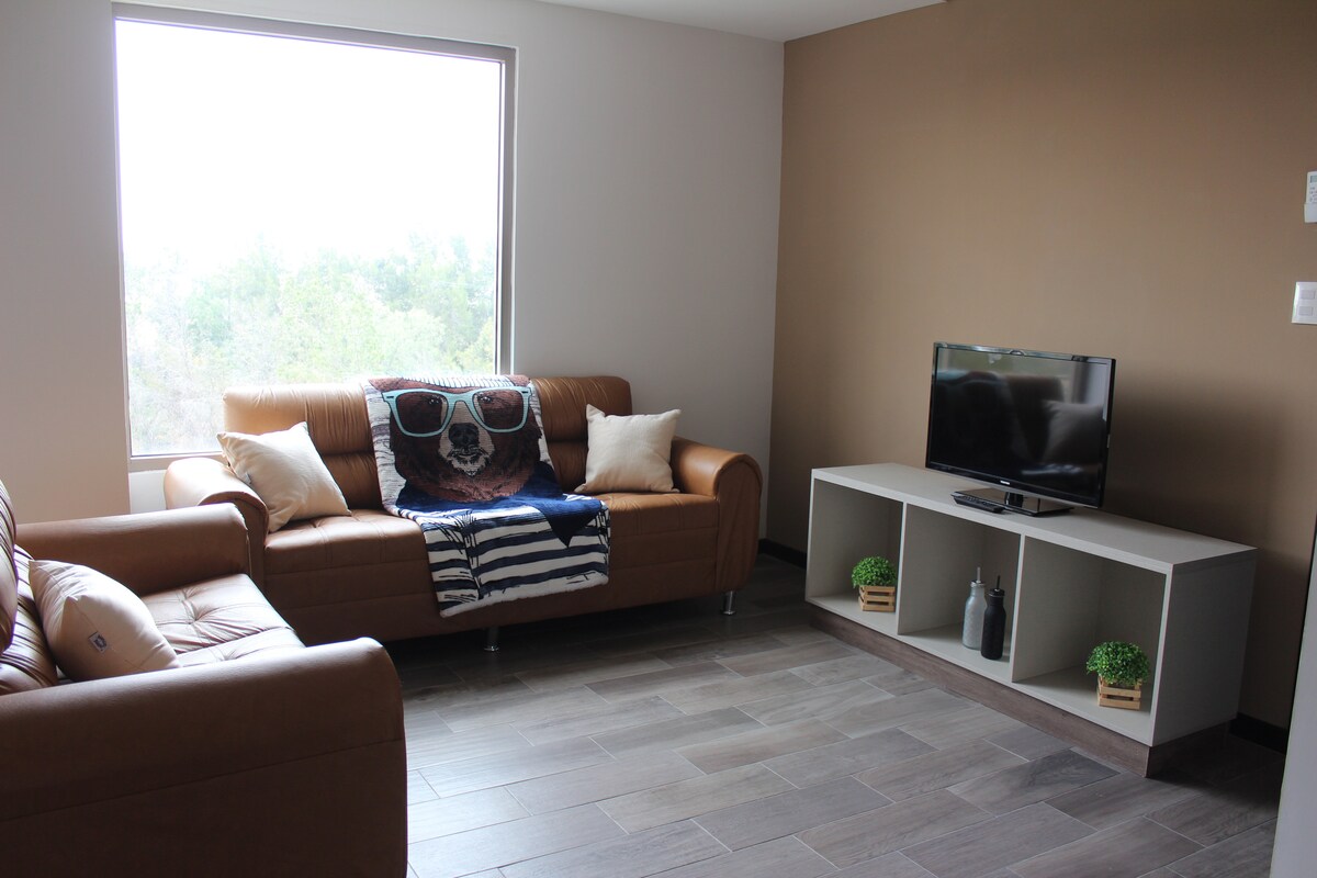 Ontspan en kom tot rust in dit rustige en stijlvolle huis. Zeer dicht bij Saltillo City en Ramos City. 1 slaapkamer , 1 tweepersoonsbed , 1 complete badkamer, wasmachine , droger , airconditioning , parkeerplaats. De beste plek om te genieten van onze stad op de beste locatie. Nieuwe appartementen
