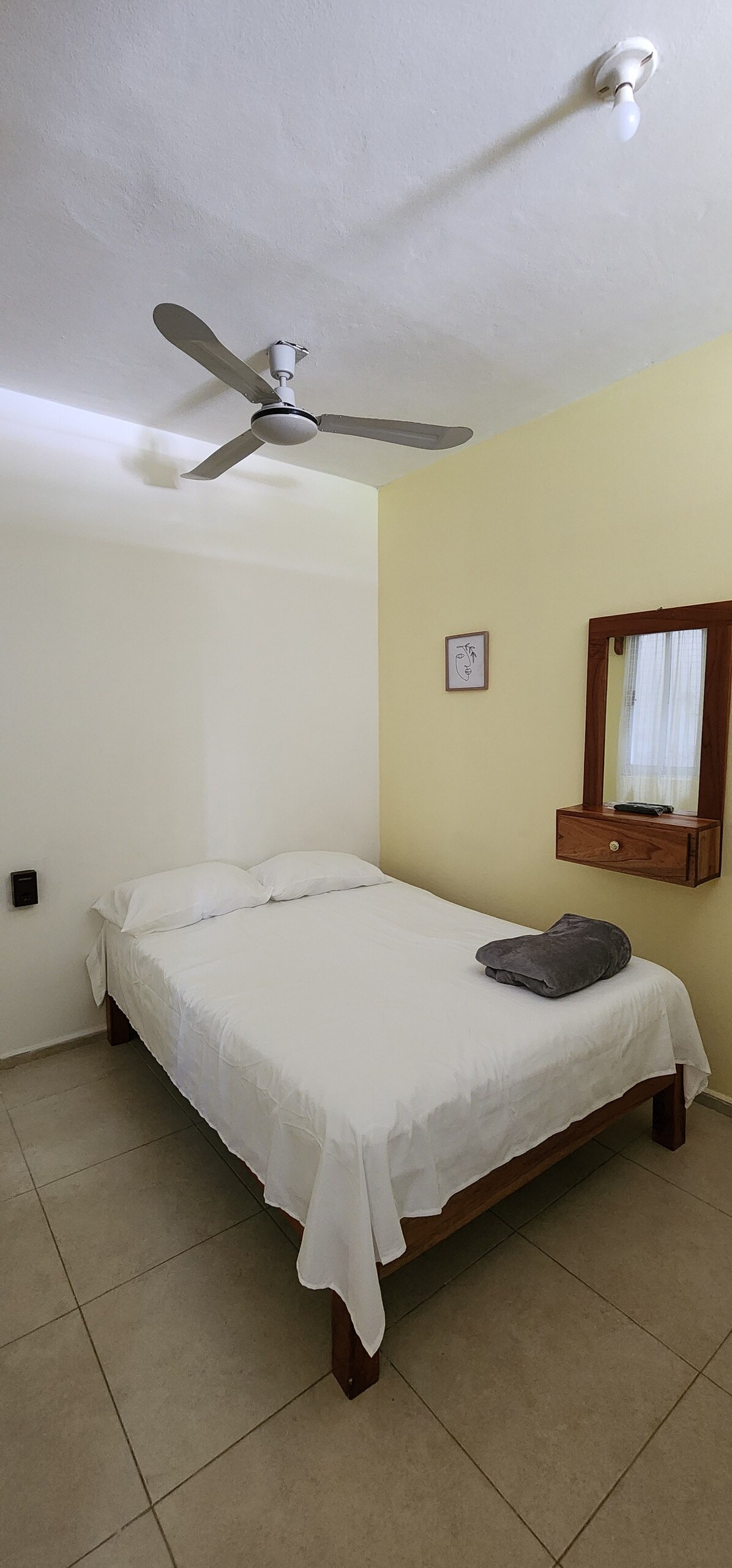 Geniet van een rustig verblijf in dit comfortabele appartement omringd door groen, ideaal om uit te rusten na het verkennen van Palenque. De ruimte heeft houten plafonds, grote ramen en een ontspannen sfeer. De kamer is voorzien van een comfortabel bed, airconditioning en goede natuurlijke verlichting. Daarnaast heeft het appartement een woonkamer en een tv, en is het gelegen in een rustige omgeving dicht bij de belangrijkste toeristische attracties van de stad.