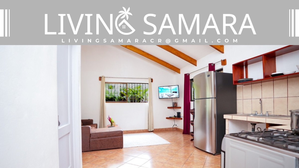 *Nieuw* Geheel gefilterd water, Warmwaterverwarming, airconditioning Casita Olivia is een schattige comfortabele bungalow in een kleine veilige Tico buurt met alles wat je nodig hebt om je verblijf in Samara cool, comfortabel en leuk te maken zonder je budget te breken! Het stadscentrum en 2 stranden liggen op loopafstand. Je kunt gebruikmaken van fietsen, snorkelspullen en koelbox inbegrepen bij je verblijf! Eigen entree met zitje op de binnenplaats en hangmat. Uitgeruste keuken en extra linnengoed aanwezig. Kom bij ons logeren!