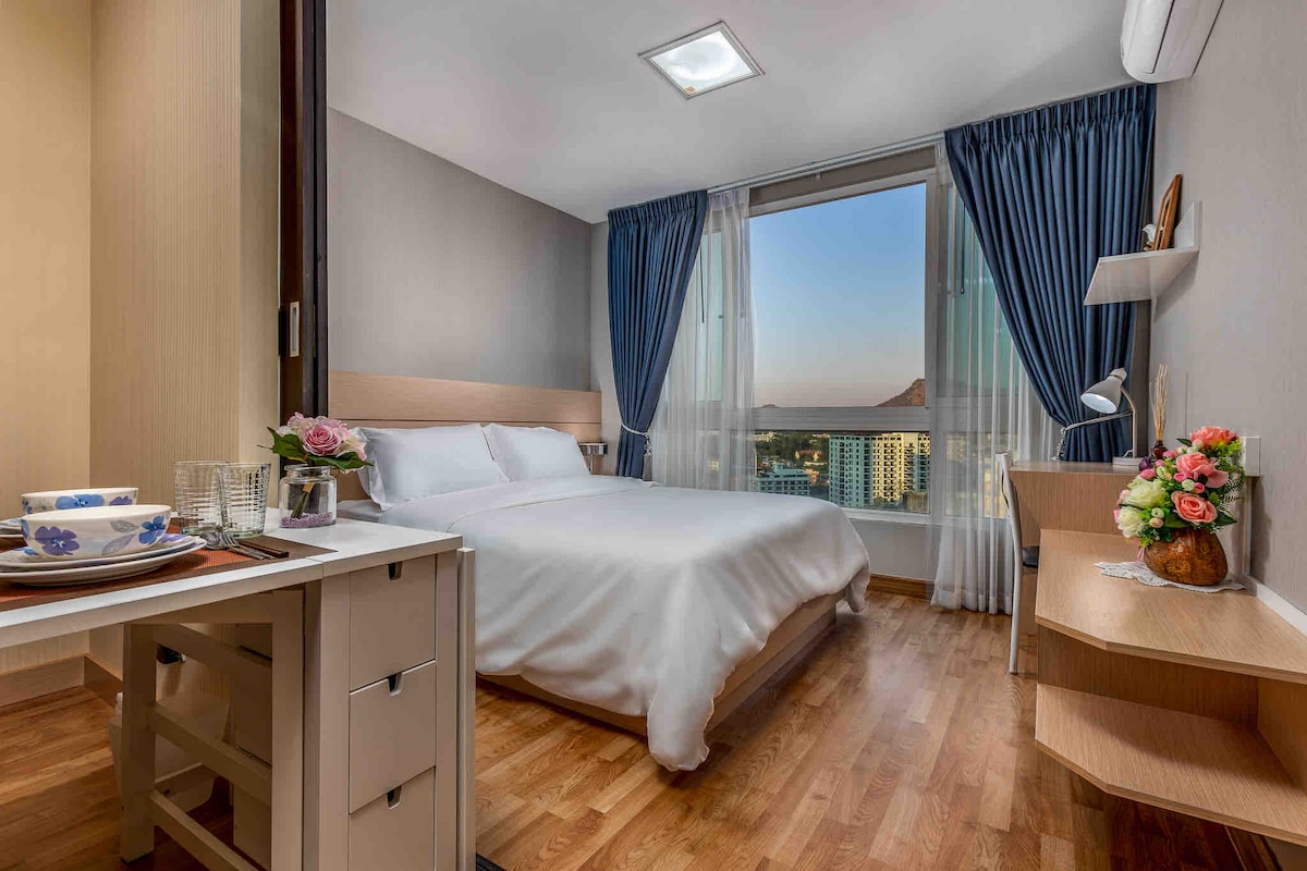 This is the best room in Sriracha! You’ll stay in the most premium unit of the building — fully surrounded by breathtaking sea views, thoughtfully designed like a 5-star hotel suite. ✔ Spacious living room with panoramic sea views and a large Smart TV ✔ Fully equipped kitchen where you can actually cook real meals ✔ Bedroom with a direct sea view — wake up with the ocean right in front of you This is more than just a stay — It’s a coastal retreat designed with heart and style. 💙