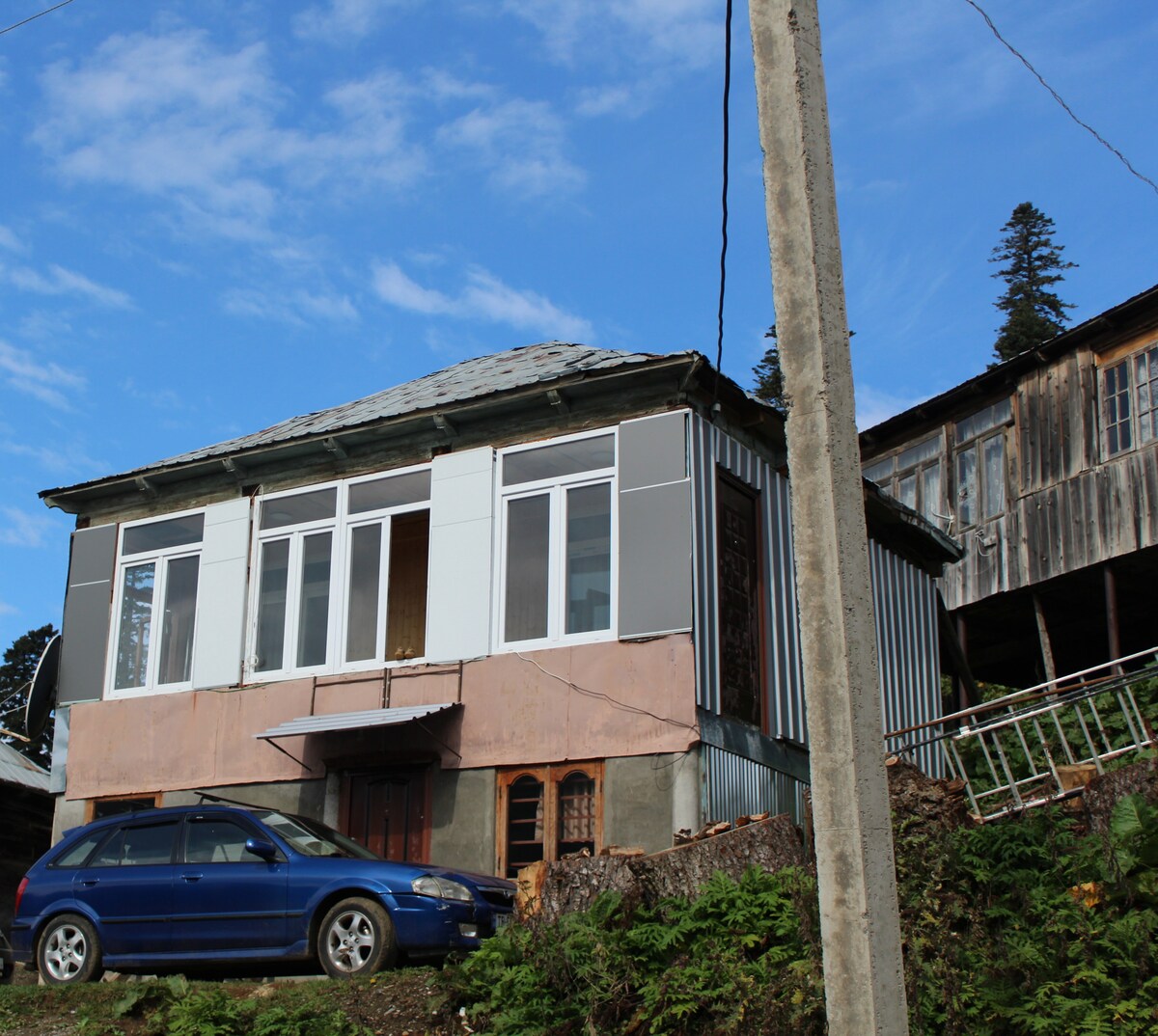Volledig houten traditioneel Imeretisch verhoogd huis met aangrenzende keuken, tuin en bosgrond. Gelegen in het dorp Sakulia, op 25 minuten rijden van de internationale luchthaven Kutaisi en op 40 minuten rijden van het centrum van Kutaisi. Het hoofdhuis is gerenoveerd als een grote studio, inclusief slaapkamer, woonkamer en badkamer. De keuken is een bijgebouw van het hoofdhuis en bevindt zich op de begane grond. Composttoilet is in de buurt van het huis in de tuin. Badkamer heeft een ligbad en een urine toilet.