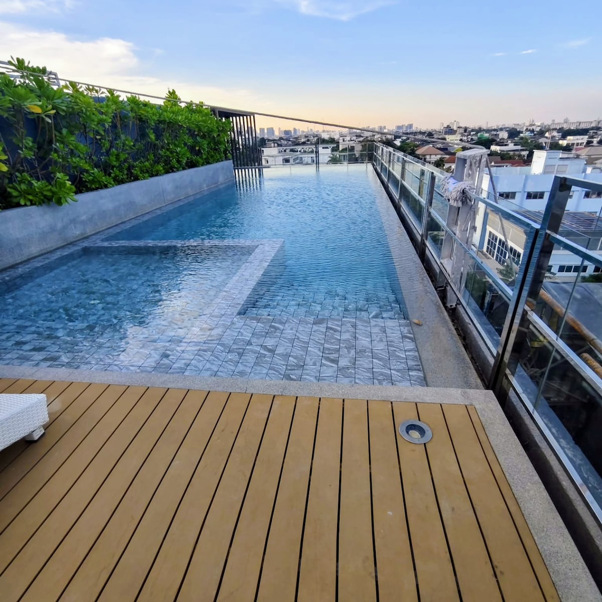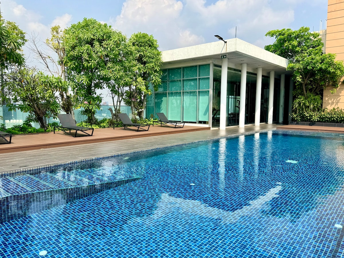 ZWEMBAD OP HET DAK FITNESSRUIMTE SUKHUMVIT BTS RIVER VIEW BKK
