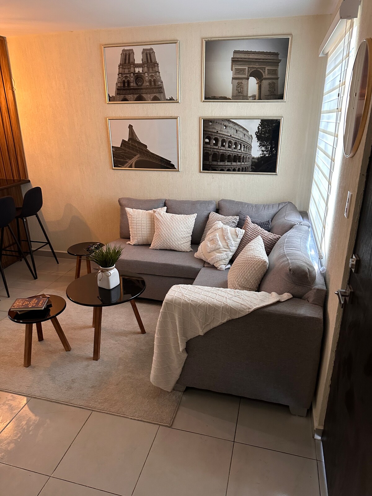 Het appartement heeft airconditioning in de GROTE SLAAPKAMER. De service wordt apart gecontracteerd. Extra kosten van $ 99,00 pesos per dag Kom tot rust in deze rustige en stijlvolle ruimte. Helemaal nieuw met twee slaapkamers. Ruim voor 4 gasten. Met optie voor een 5e [tegen extra kosten]. Met voorzieningen [fitnessruimte, speelkamer, werkruimte, bioscoop]. Uitstekende locatie. In het zuiden van de stad. 5 minuten van de pleinen en supermarkten. We zullen je verblijf aangenaam maken.